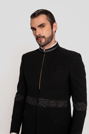 | Fabric Quality | Bandgala in imported fabric paired with a shirt cotton and pants in cotton lycra | Color | Bandgala and pants in black |