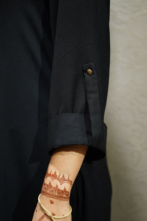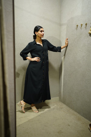 Antique metallic buttons ,with high slits and a back yoke for ease with comfort.This timeless Coord set has a fabulous drape and a slim cut,accessorize it and enjoy the look.